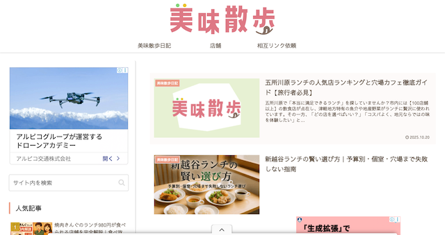 街歩きとおいしいものが好きな方にぴったりのサイトです。