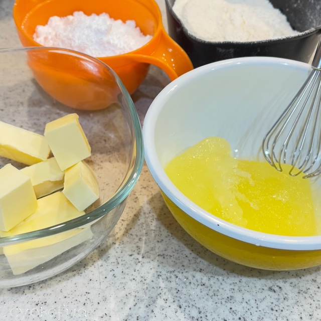 - バターをやわらかくして、粉糖と混ぜて