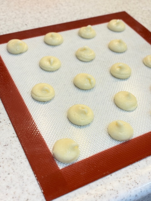 - 天板の上に、絞りで直径2.5cmのサイズで絞っていく