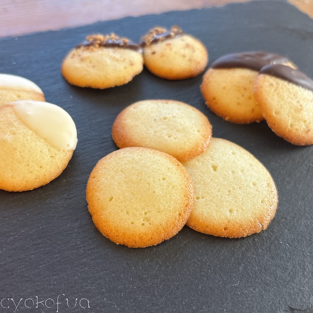 カリッと軽くて、口の中でほろりと溶けるラングドシャの出来上がりです。