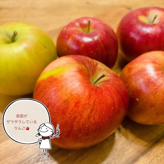 ザラザラしたりんごは、ワックスが少なめで自然のままの果皮のことが多いです。