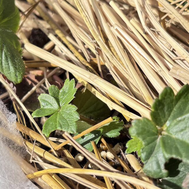 冬の間はわらでマルチングして、寒さから守ってきたいちごたち。お手入れのあとも「まだ油断はできないわよね…」と、引き続きわらを敷いておきました。信州の2月、まだまだ寒い日がやってきますから(経験済みです😅)。